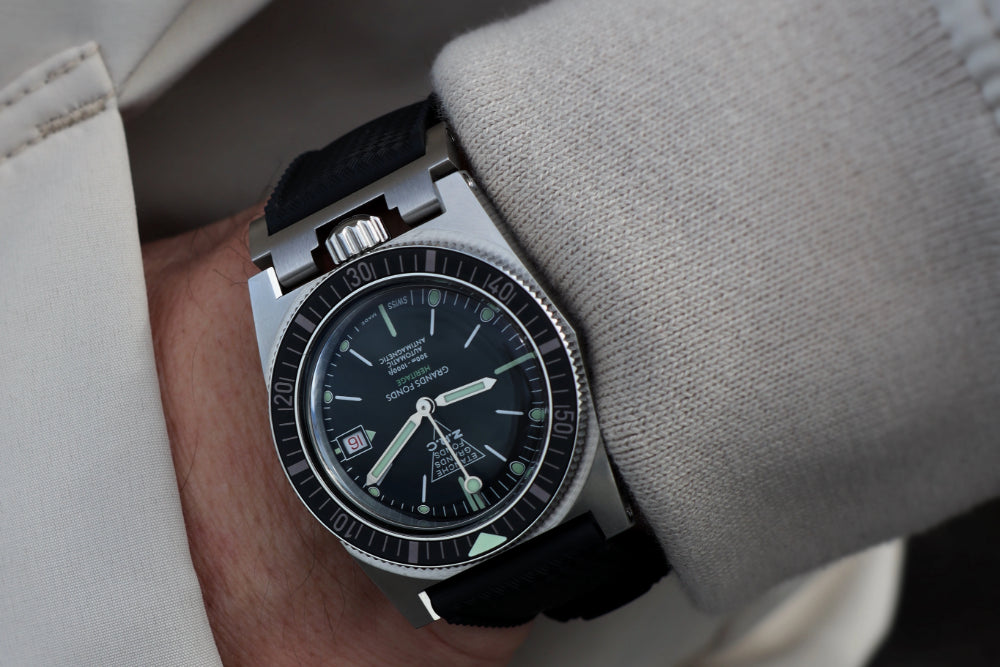 Every detail of this resolutely sport chic diving watch is a true tribute to the historic model of the 60’s.
